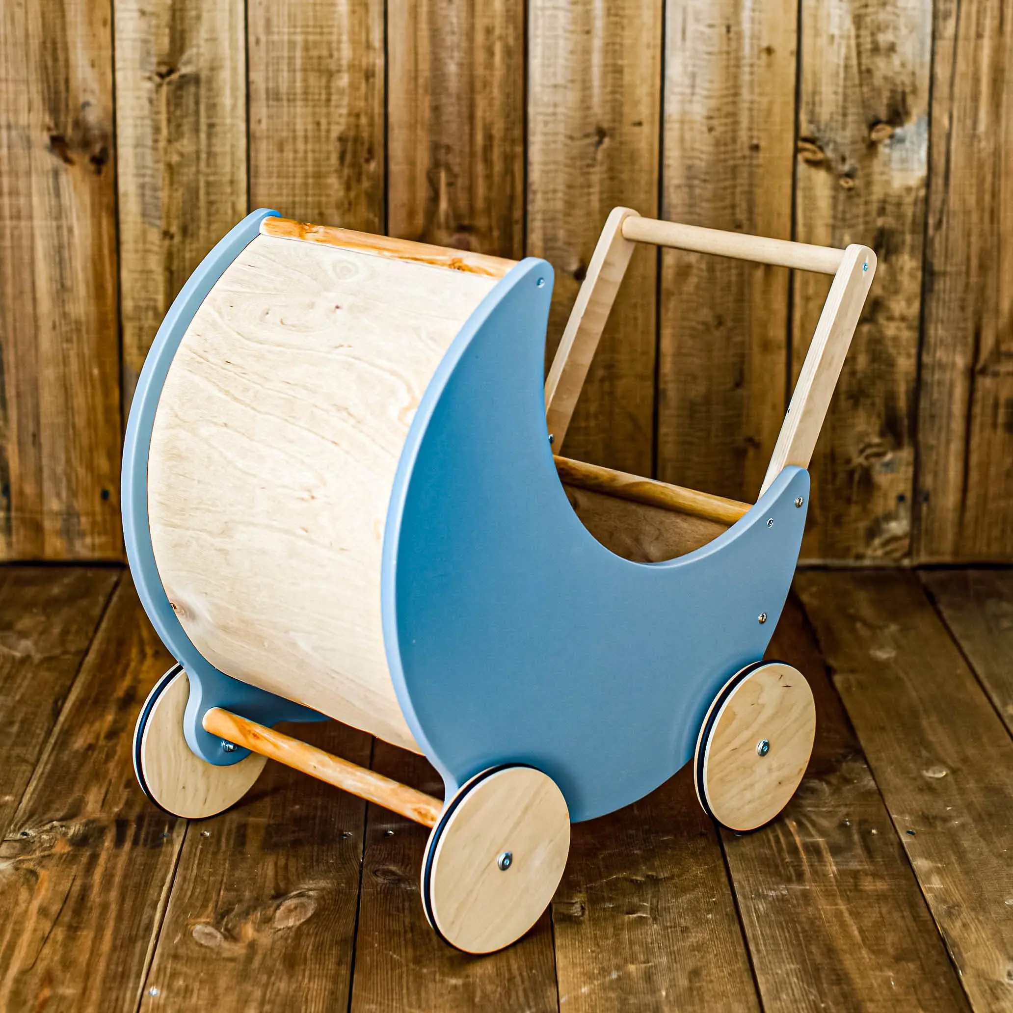 Căruciorul este realizat din lemn și MDF, este rezistent la umiditate și nu se decolorează sub acțiunea razelor solare. Lemnul dur asigură tot suportul necesar, chiar și pentru copii ce fac abia primii pași. Roțile sunt din lemn, iar marginile sunt învelite în silicon, pentru a aluneca mai ușor și pentru a minimaliza zgomotele.