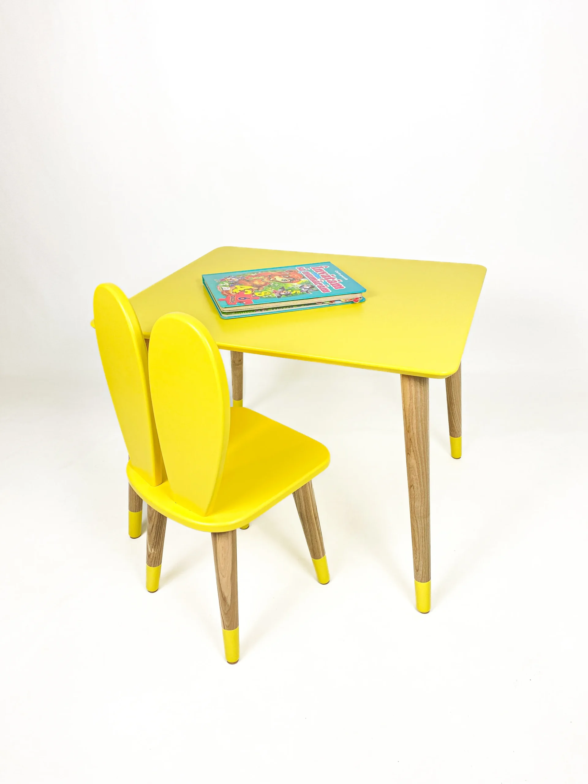 Mobilierul Timber Kids este realizat exclusiv din materiale de calitate superioară, ecologice și antialergice, sigure pentru cei mici. Blatul în culori vesele și picioarele din lemn masiv, cu formă specială, oferă un aspect elegant și rafinat, care se potrivește perfect într-un decor modern.