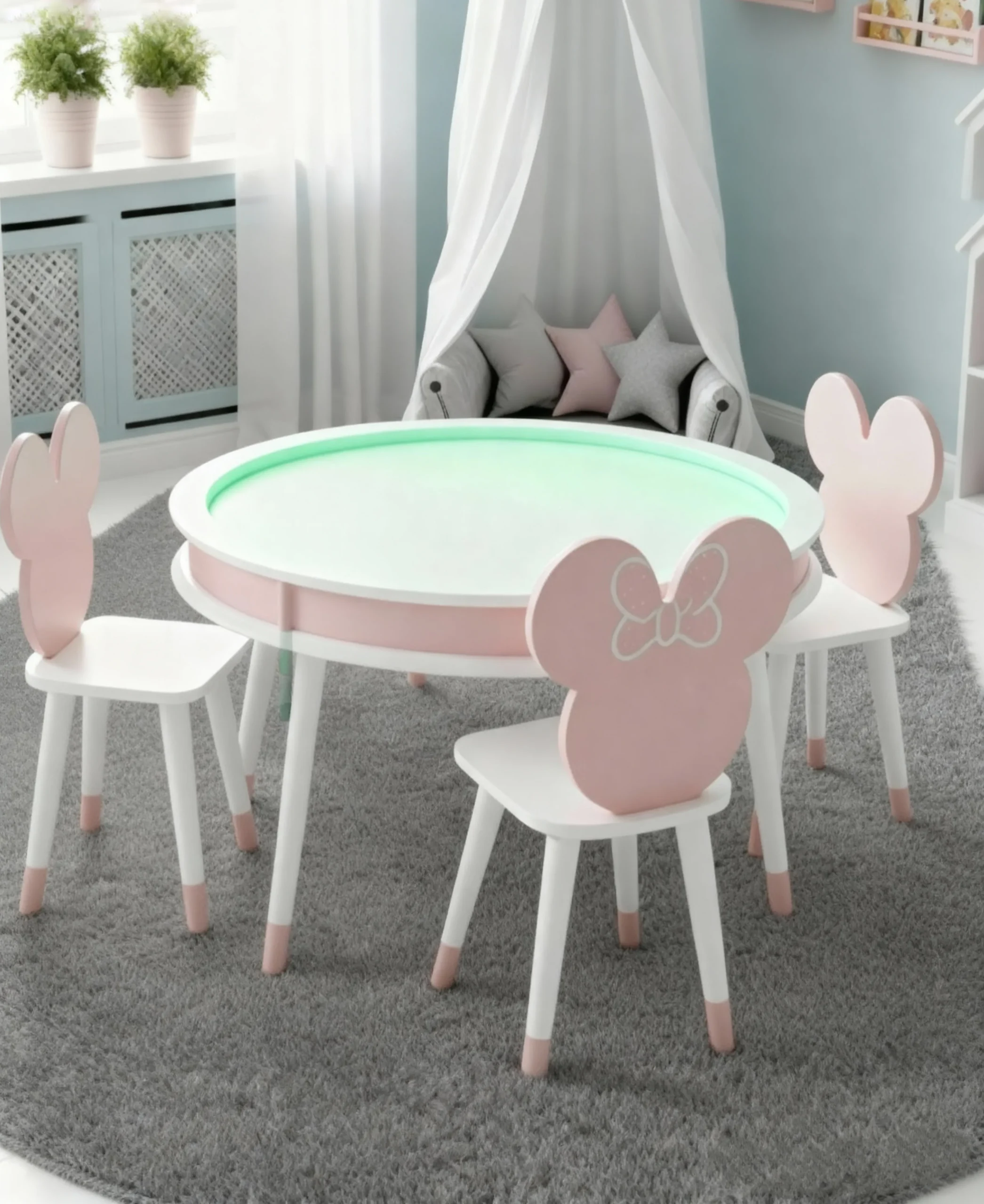 Măsuța Senzorială Educativă alb-roz pentru Copii