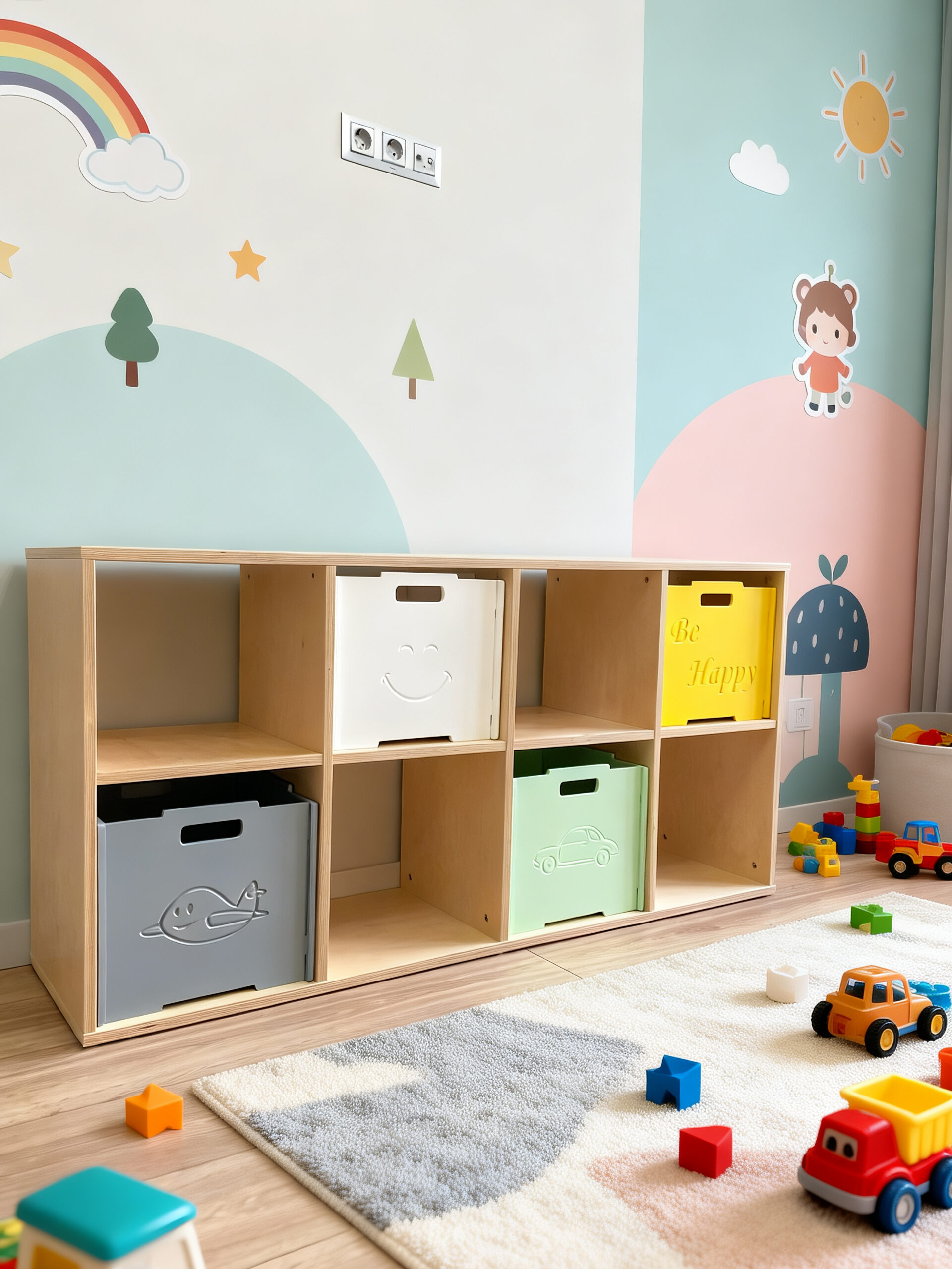 Cele 4 rafturi generoase oferă spațiu suficient pentru cărți, jucării și accesorii. Înălțimea optimă permite copilului să ajungă singur la lucrurile preferate, promovând autonomia și responsabilitatea. Fiecare raft poate suporta până la 15 kg.