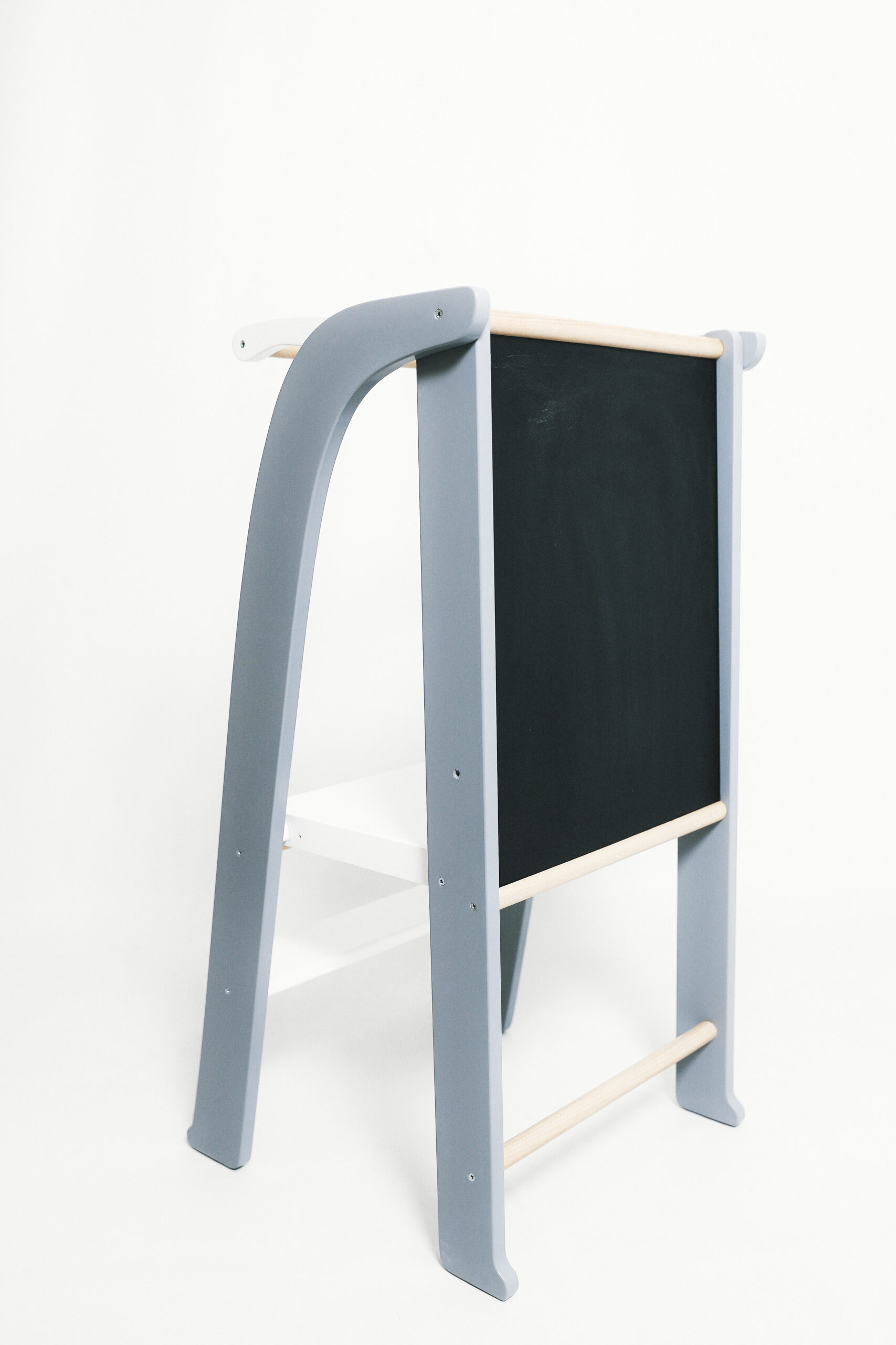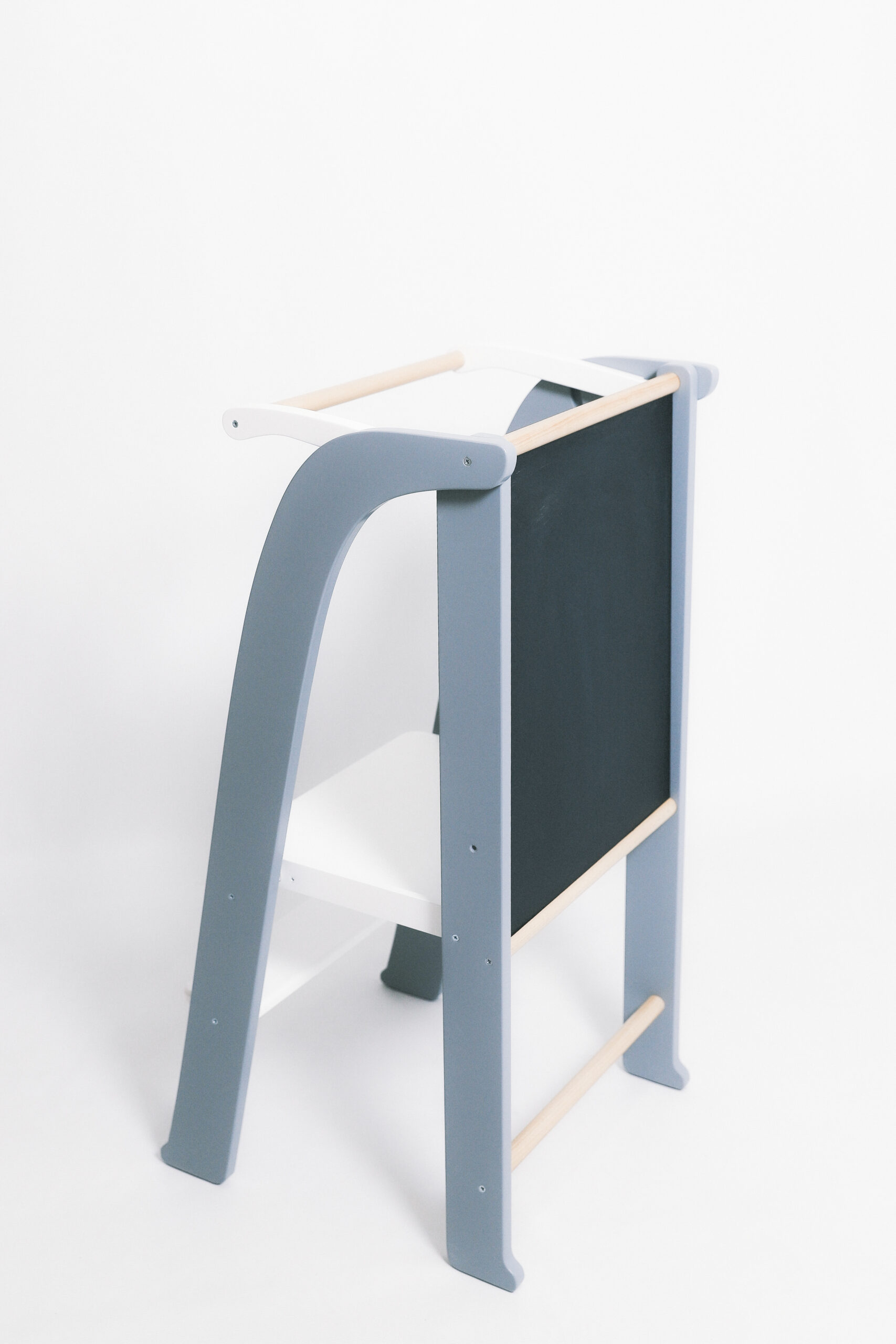 La baza turnului ajutător alb gri pentru copii stau materiale selectate cu grijă: lemn de mesteacăn de calitate superioară și placaj rezistent, tratate cu vopsea pe bază de apă ecologică, certificată non-toxică. Toate marginile sunt rotunjite manual pentru a preveni orice risc de accidentare, iar structura este testată pentru stabilitate maximă, suportând până la 50 kg. Fără șuruburi vizibile sau colțuri ascuțite, acest turn ajutător pentru copii oferă liniște totală părinților. Vopseaua eco nu emite compuși volatili dăunători, fiind sigură chiar și pentru bebeluși. Ca experți în mobilier Montessori, recomandăm acest produs pentru că promovează un mediu sănătos, reducând expunerea la chimicale sintetice comune în produsele ieftine de pe piață. Turnul ajutător alb gri copii nu este doar un accesoriu, ci un partener de încredere în primele etape de dezvoltare motorie și cognitivă.