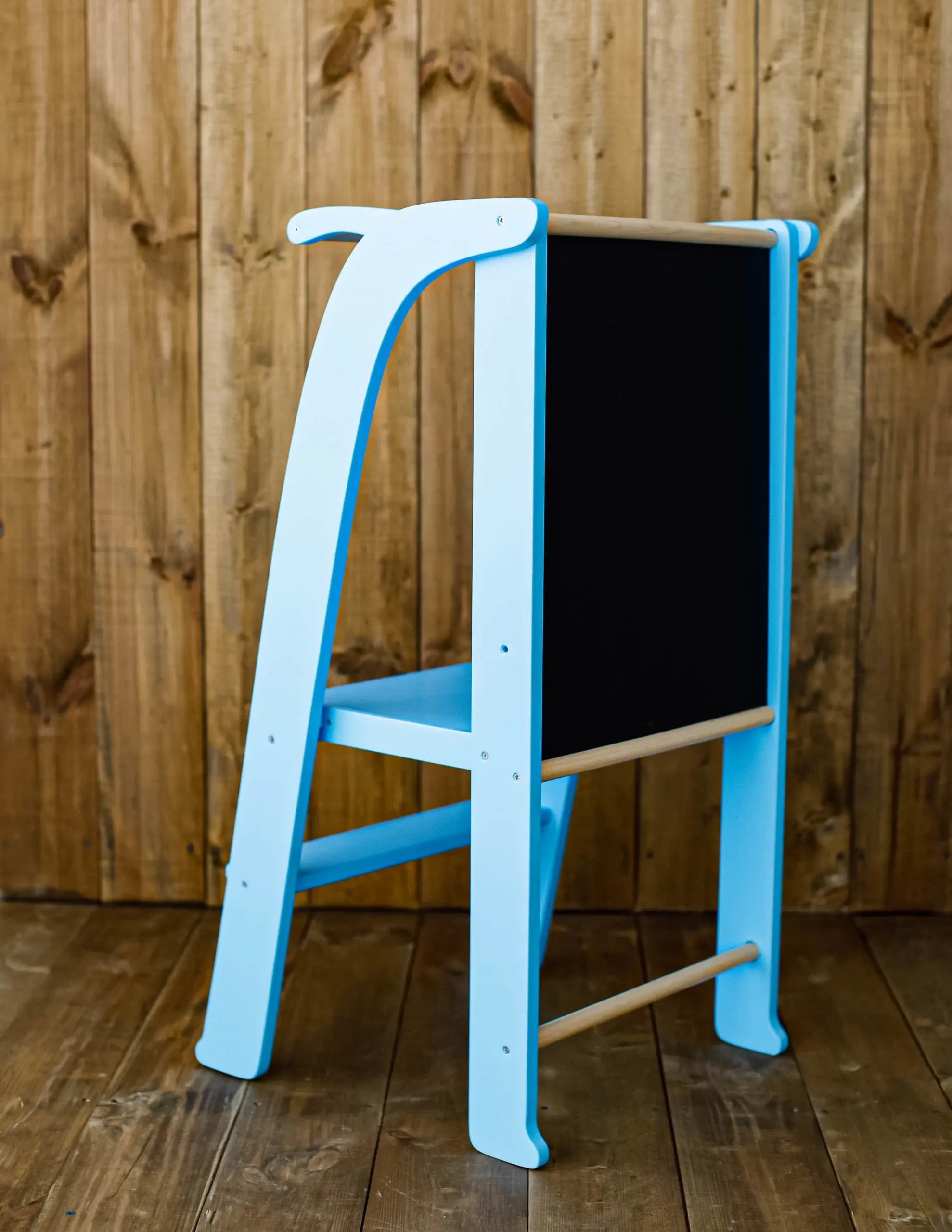 Turnul de învățare cu tablă a fost conceput pentru micuții ce vor să descopere lume. Acesta încurajează independența copilului, oferindu-i tot suportul și siguranța necesară. Jucăria dispune și de o tablă de scris, care dezvoltă creativitatea celui mic. Suplimentar este echipat cu șine de siguranță pentru a preveni căderea copilului.
